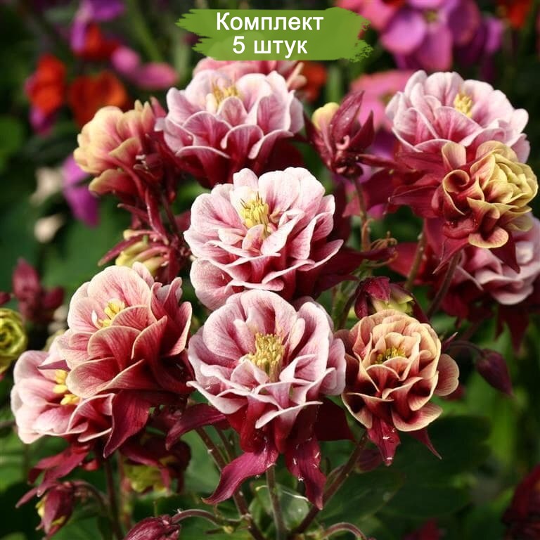 Саженцы аквилегии сорта Винки Дабл Ред энд Вайт (Winky Double Red-White) - 5 штук. Прекрасное предложение: комплект из 5 саженцев по цене 4!