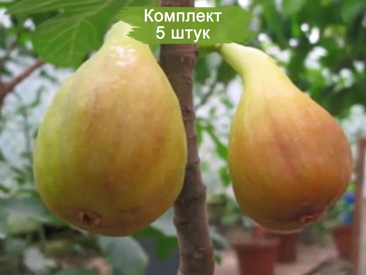 Саженцы инжира сорта "Долматский" (желтовато-зеленый, ремонтантный) - 5 штук. Специальное предложение: комплект из 5 саженцев по цене 4!