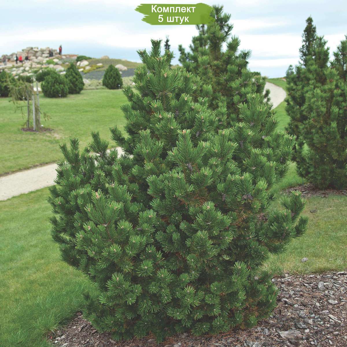 Комплект из пяти молодых растений сосны горной по цене четырех - идеальное предложение для садоводов! Эти сеянцы достигают высоты до 15 см. Сосна горная, известная своим раскидистым кустарниковым видом, может вырасти до 5 метров в высоту при культивировании. Отличительные черты включают коленчатые ветви и длинные иглы. Шишки у этого вида сосны симметричные, могут быть как сидячими, так и на коротких ножках, и не имеют налета "инея". Осенью они приобретают желто-коричневый цвет, а при созревании становятся цвета корицы. Чешуйки на шишках одинаковы по форме и размеру, что добавляет растению декоративности.