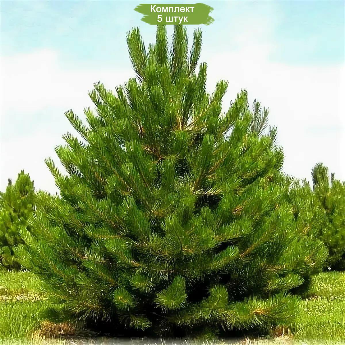 Комплект саженцев сосны обыкновенной, размером от 40 до 60 см, включает 5 штук по стоимости 4. Это предложение является экономически выгодным выбором для озеленения.