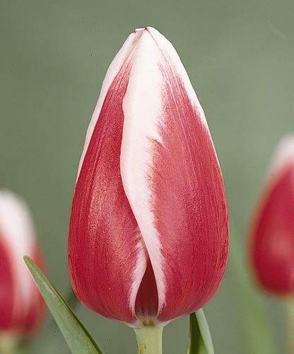 Тюльпан "Гуус Папендрехт" из группы Триумф поражает своей красотой и элегантностью. Его цветение начинается в мае, когда на прочных цветоносах распускаются высокие бокаловидные цветы ярко-красного цвета с широкой белоснежной каймой по краям заостренных лепестков. Высота бокала составляет 7-8 см, а диаметр цветка достигает 8-10 см. Этот тюльпан не раскрывается полностью, что позволяет ему сохранять свою декоративность и свежесть. Один бутон цветет в течение 10-14 дней, издавая тонкий, приятный аромат. Высота растения варьируется от 40 до 55 см, а его темно-зеленые прикорневые листья добавляют дополнительную декоративность.