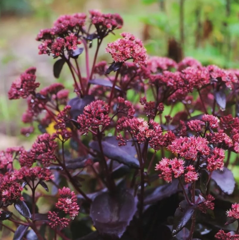 Седум (Очиток) Эмперор Вейв (Emperor's Waves) – это эффектный и декоративный сорт, достигающий высоты 30-40 см. Его листья имеют насыщенный пурпурно-фиолетовый оттенок, а цветы, собранные в щитковидные соцветия, окрашены в темно-розовый цвет. Период цветения приходится на август и сентябрь.