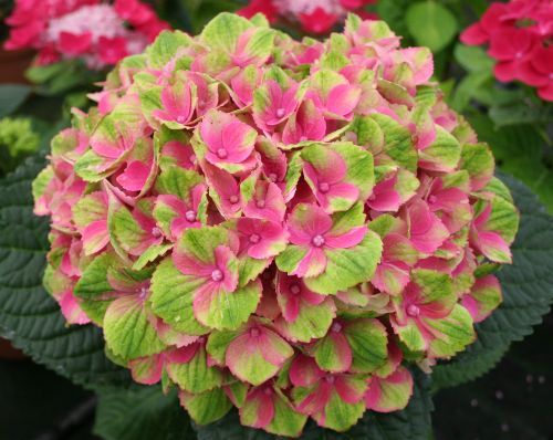 Особенности сорта Мэджикал Аметист заключаются в его уникальной способности менять окраску цветков. Вначале они лимонно-зеленоватые, затем розовеют, а позже становятся розовыми с зелёной окантовкой. Соцветия крупные и округлые, что делает их идеальными для срезки. Кустарник компактный, высотой 90-120 см и шириной 60-90 см.