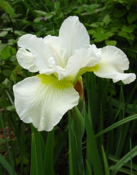 Ирис "Харпсвелл Хэппинес" - это один из самых выдающихся белых сортов, отличающийся обильным цветением. Его широкие, плотные лепестки с легкой гофрировкой по краям имеют белый цвет с желтовато-зеленым основанием. Этот сорт радует своим цветением в мае-июне, а осенью можно наблюдать повторное, хотя и менее интенсивное цветение. Куст достигает высоты 70-80 см, имеет прямостоячие побеги, а цветоносы немного ниже листьев. "Харпсвелл Хэппинес" отличается высокой зимостойкостью.