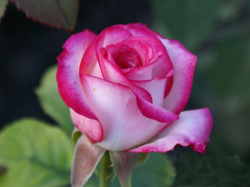 Саженец чайно-гибридной розы Белла Вита (Bella Vita) отличается бокаловидными цветками, состоящими из 17-25 лепестков, которые имеют двухцветную окраску: белый с широкой темно-красной каймой. Листва у этого сорта темно-зеленая и глянцевая, а куст практически не имеет шипов.