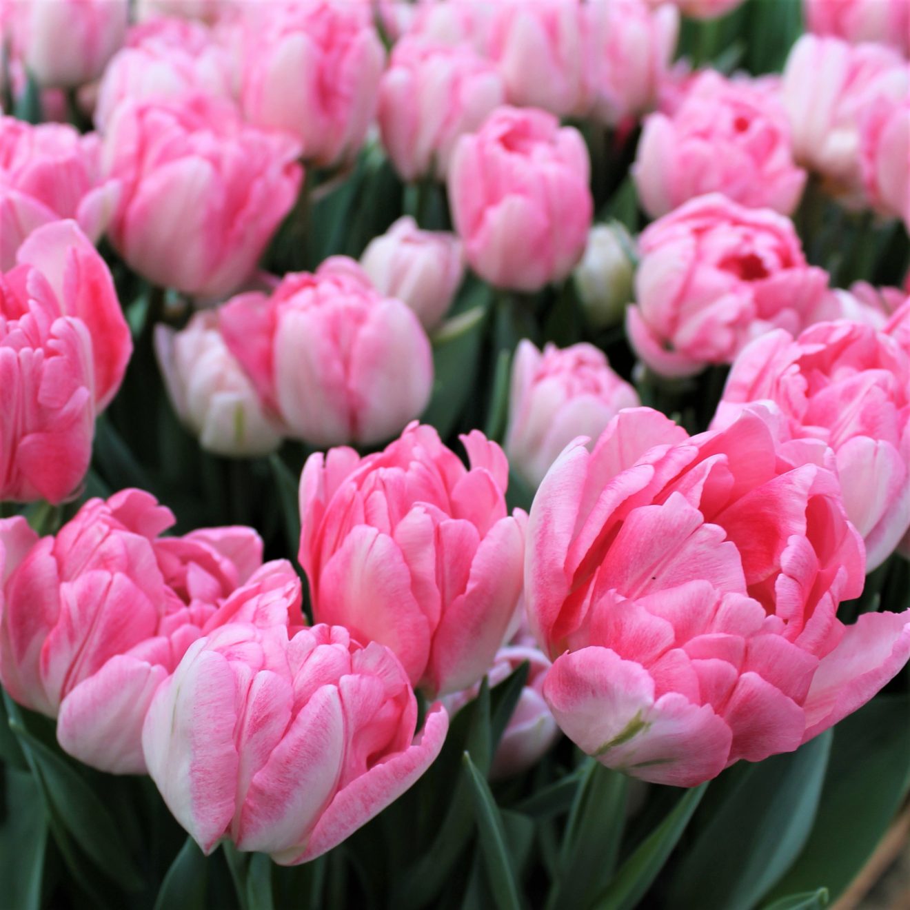 Весной Фокстрот радует глаз крупными бокаловидными цветами, достигающими высоты 10-12 сантиметров и диаметра 8-10 сантиметров. Цветы этого сорта особенно привлекательны благодаря своей яркой, махровой структуре и двухцветной окраске: светло-розовые лепестки украшены широкими белыми полосами. Аромат у этих тюльпанов сладкий и средней интенсивности, что добавляет им дополнительного очарования.